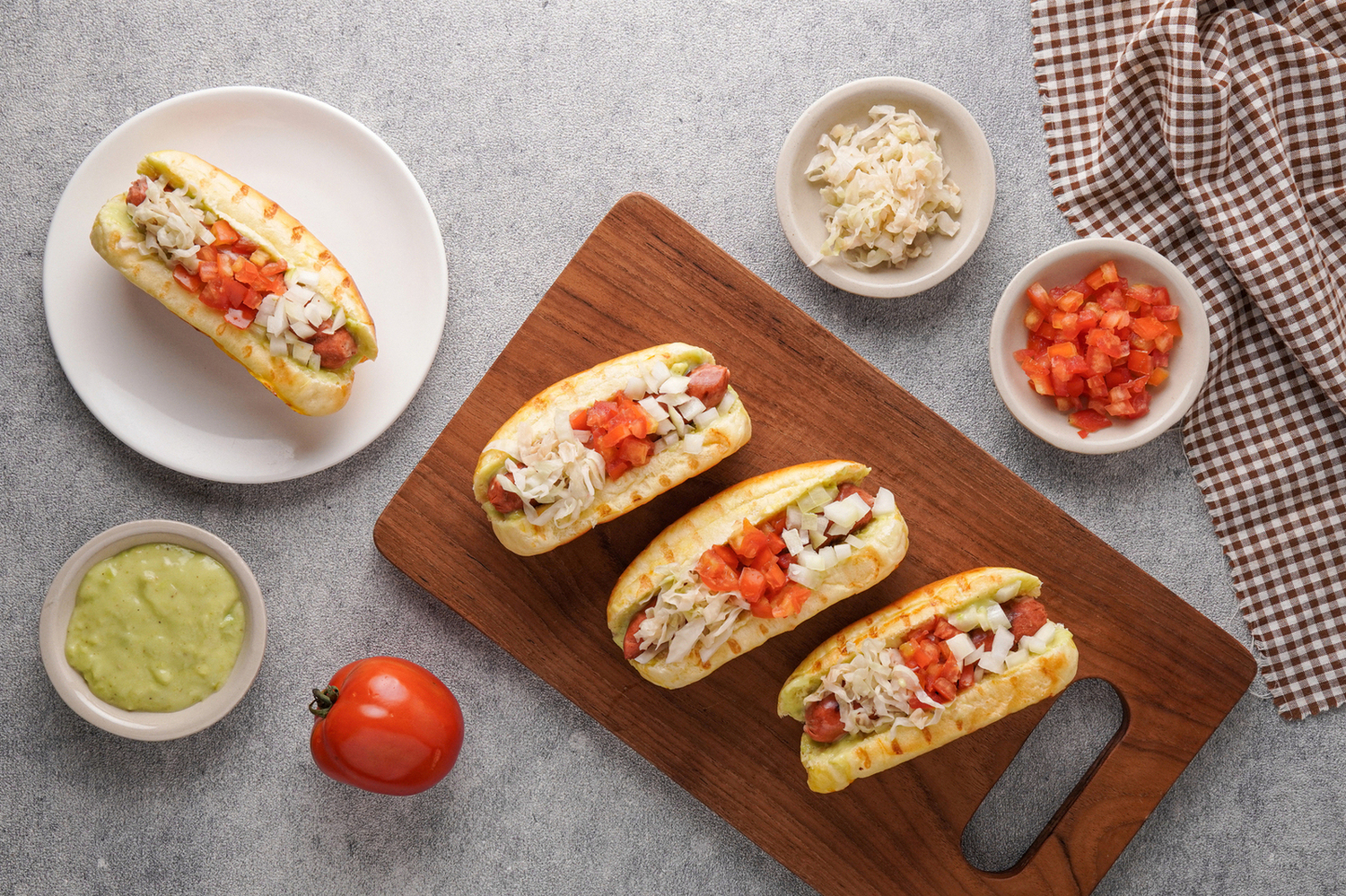 1. Vegan: Swap out the hot dog sausages for your favorite veggie or plant-based sausages! There are plenty of amazing options on the market, so you won’t feel left out. Replace the mayonnaise with vegan mayo, and you’ve got yourself a delicious, cruelty-free Completo.