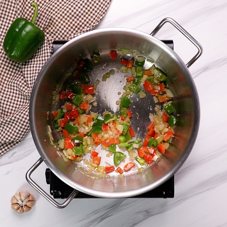 Step 1: Sauté Onion, Garlic, and Bell Peppers