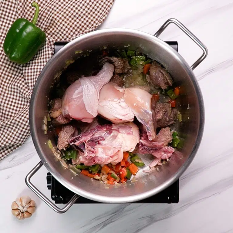 Step 4: Simmer Mixture Until Beef and Chicken Are Tender