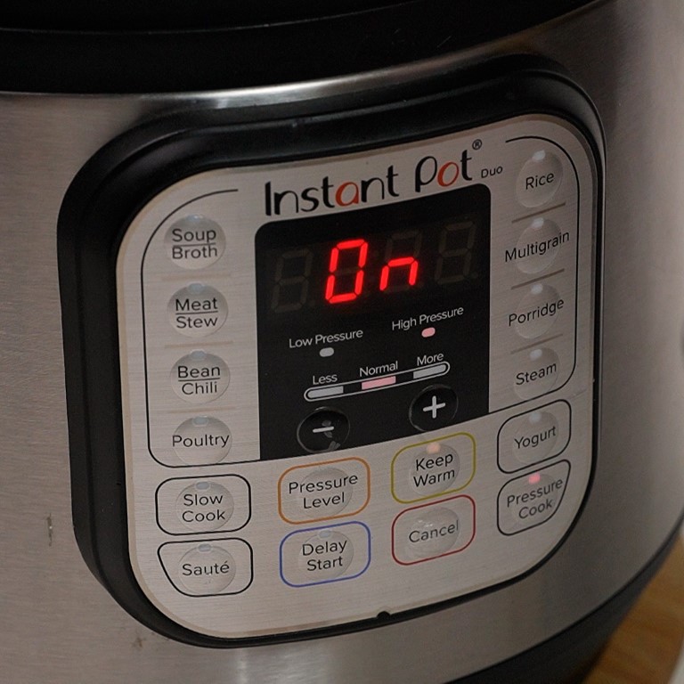 Secure the lid on the Instant Pot and set the valve to the sealing position. Select the Pressure Cook or Manual setting and set the timer for 10 minutes.